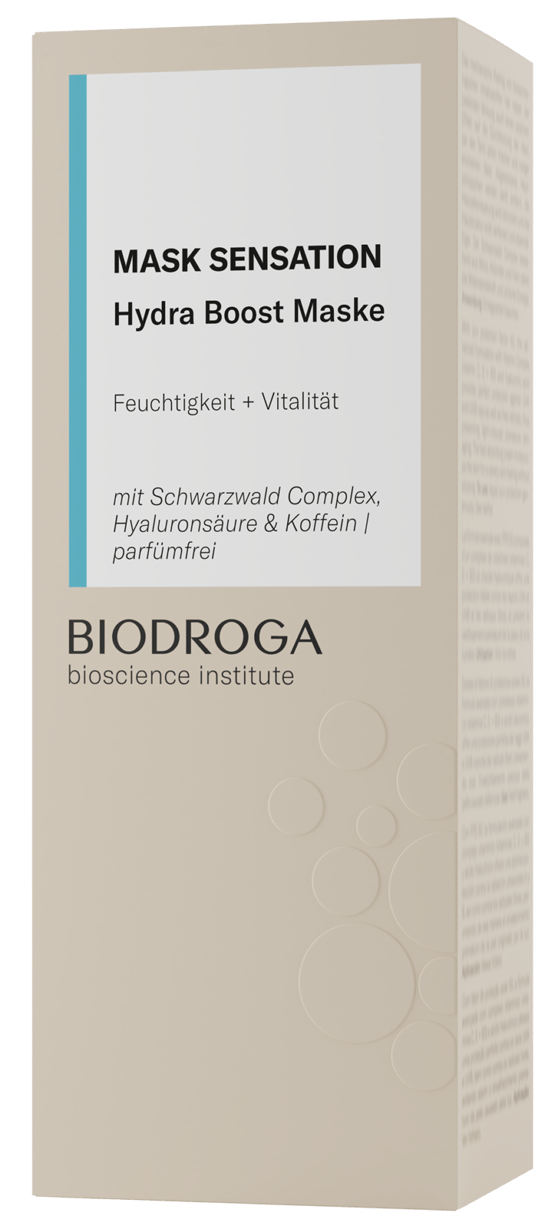 MASK SENSATION Hydra Boost Maske ist eine Feuchtigkeitsmaske mit biotechnologischen Inhaltsstoffen. Sie sorgt für intensiv hydratisierte und vitalisierte Haut. Der schnelle Beauty-Kick verstärkt den natürlichen Glow, Trockenheitsfältchen werden gemildert, die Haut wirkt praller und aufgepolstert.