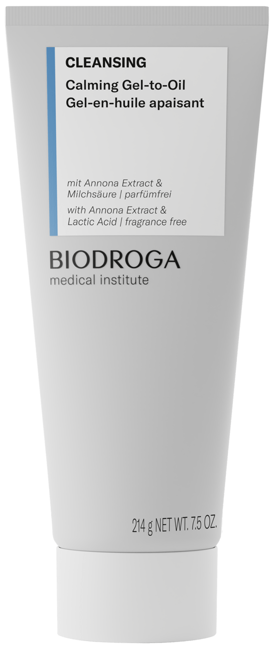 CLEANSING Calming Gel-to-Oil ist eine echte Innovation in der Gesichtsreinigung. Da speziell die sensible Haut häufig bereits auf die Reinigung gereizt reagiert, wurde für dieses hochreaktive Hautbild das Calming Gel-to-Oil entwickelt. Beim Auftragen entsteht aus dem Gel eine leichte Ölemulsion, die besonders schonend reinigt, ohne die Haut zu beschweren oder sie auszutrocknen. Gleichzeitig wird sie in ihrer natürlichen Barrierefunktion unterstützt.