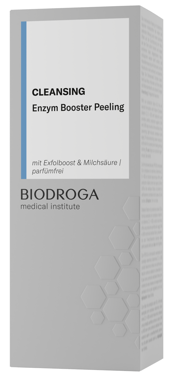 Enzym Booster Peeling stimuliert hauteigene Enzyme, die auf besonders sanfte Weise eine keratolytische Wirkung entfalten. Abgestorbenes Zellmaterial und Hornschüppchen werden schonend entfernt, die Hautstruktur wirkt verfeinert, kleine Fältchen werden gemildert und das Feuchtigkeitsspeichervermögen der Haut wird unterstützt.