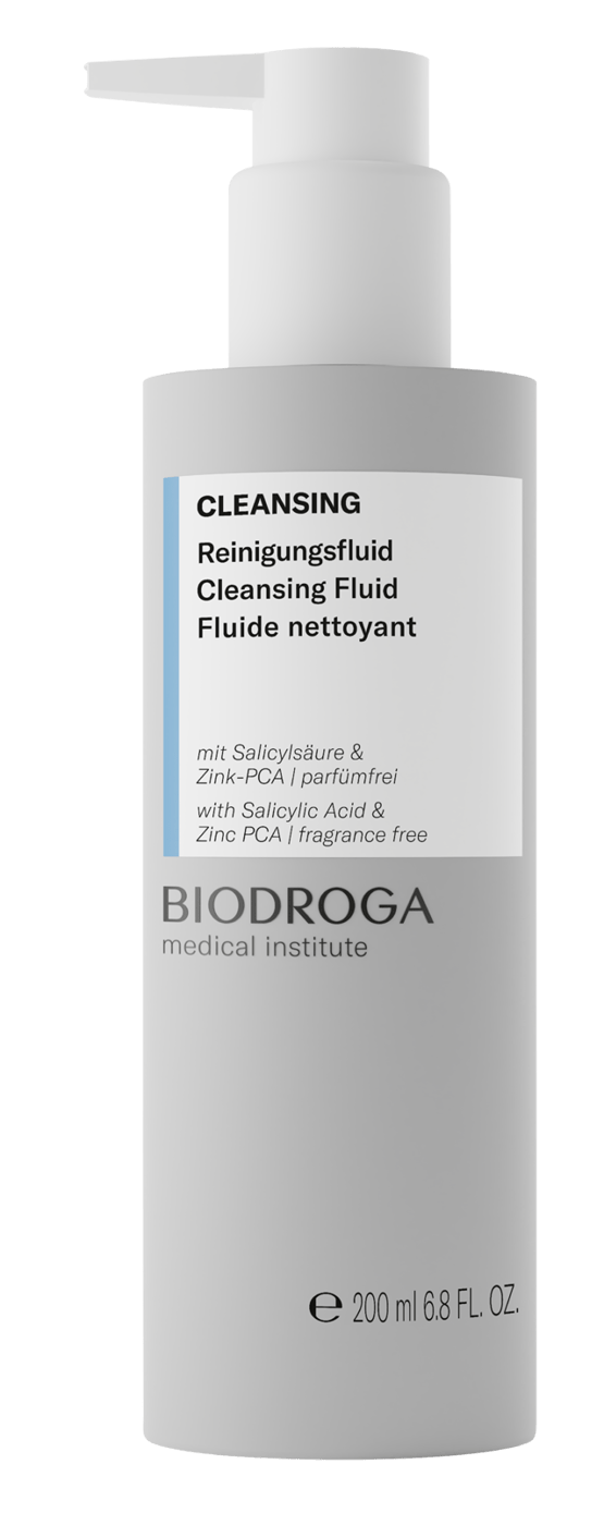 CLEANSING Reinigungsfluid reinigt intensiv und befreit verstopfte Poren von Talgansammlungen und Rückständen. Es unterstützt das pH-Management der Haut und ein ausgeglichenes Hautmikrobiom.